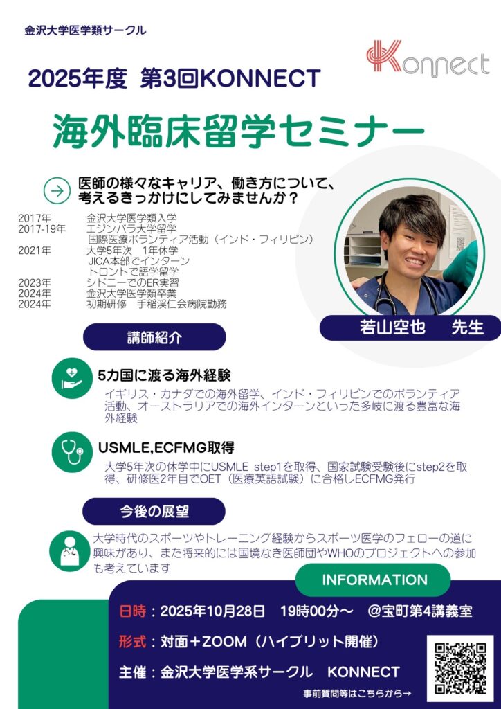 将来、海外での臨床研修や臨床医キャリアに関心がある学生の団体です。